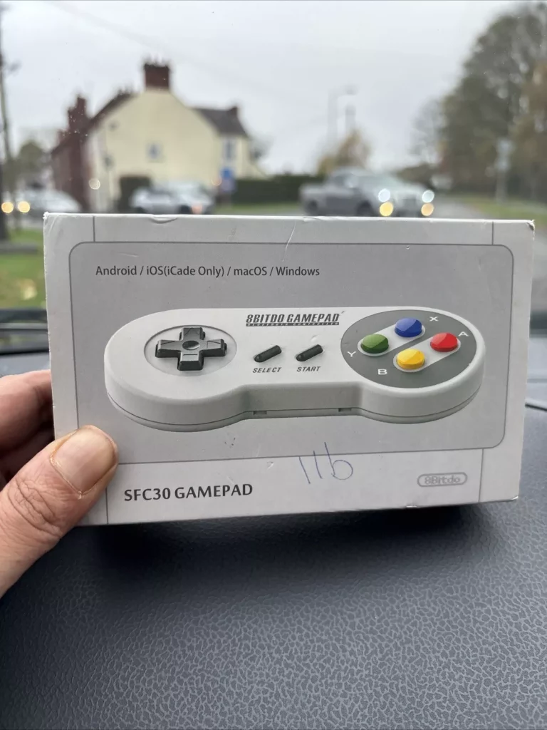Output is handled by a RAD2x cable and the controller of choice is an 8BitDo SN30 in the pre-lawsuit colours.